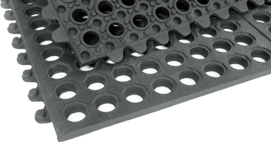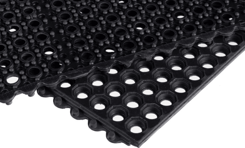 Arbeitsplatzmatte Yoga OCTA Oil • Isoliert gegen kalte Böden • Zusammensteckbar • Rutschhemmung R10: nach DIN 51130 und Verdrängungsraum V10 nach DIN 51130 • Oberfläche: durchbrochen • Material: Yoga OCTA Oil - NBR Kautschuk, für Arbeitsbereiche, wo mit Ölen und Chemikalien gearbeitet wird • Geeignet für Nassbereich (Öl) • Geringe Abnutzung • Sehr gute Stehergonomie • Modulsystem Hinweis: In Verbindung mit Leisten und Ecken ist Bodenbelag befahrbar (Sackkarren, Handwagen usw.).
