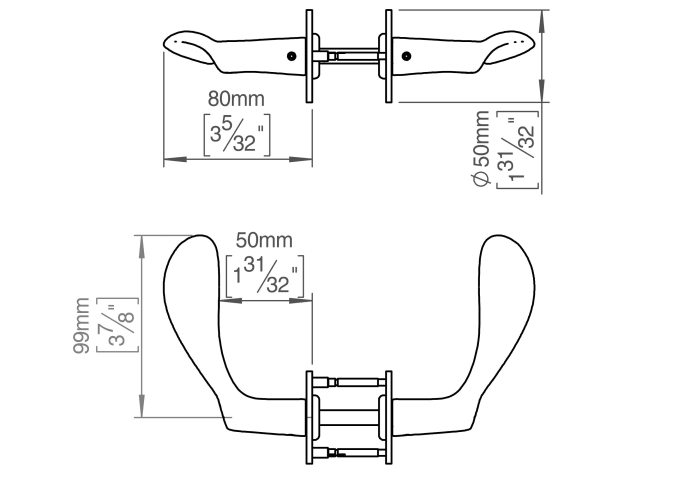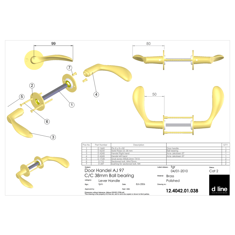 Meesenburg Artikelbezeichnung: ARNE JACOBSEN DRÜCKERPAAR MS 124X50X80 M.DRÜCKERROS.38MM,TS33-59,12.4042.01.038