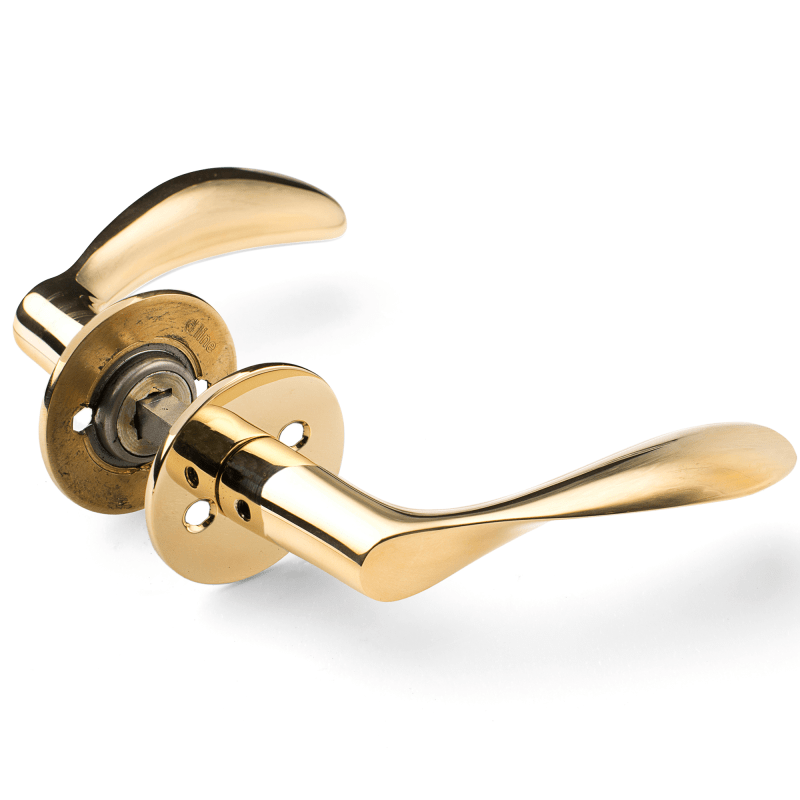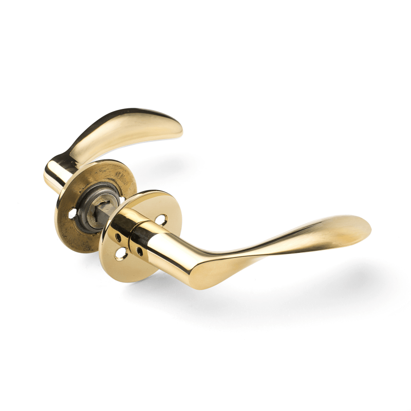 Kollektion Arne Jacobsen, Türdrücker AJ kleines Paar, 8x8mm, massive Rosette, cc 38mm, 33-59mm aus poliertem Messing. Zertifiziert nach EN 1906 bis 47-B1140U. 20 Jahre Garantie.