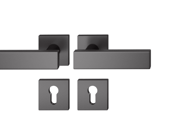 FSB Drückergarnitur 12 1003; Produkttyp: Drückergarnitur; Produkttyp (Hersteller): Drückergarnitur; Ausführung: Rosette; Befestigungsart Drückerrosette (außen): verdeckt verschraubt; Befestigungsart Drückerrosette (innen): verdeckt verschraubt; Befestigungsart Schlüsselrosette (außen): verdeckt verschraubt; Befestigungsart Schlüsselrosette (innen): verdeckt verschraubt; Befestigungstechnik: mit Stütznocken; Montageart: aufliegend; Form Drückerrosette: eckig; Form Schlüsselrosette (außen): eckig; Form Schlüsselrosette (innen): eckig; Vierkant: 8 mm; Material: Aluminium; Material Unterkonstruktion (Griffrosette): Kunststoff-Edelstahlverbundbau; Form Türgriff (innen): Design; Form Türgriff (außen): Design; Länge Türgriff (innen): 130 mm; Länge Türgriff (außen): 130 mm; Höhe Türgriff (innen): 53 mm; Höhe Türgriff (außen): 53 mm; Breite Drückerrosette (außen): 55 mm; Breite Drückerrosette (innen): 55 mm; Länge Drückerrosette (außen): 55 mm; Länge Drückerrosette (innen): 55 mm; Höhe Drückerrosette (außen): 7 mm; Höhe Drückerrosette (innen): 7 mm; Breite Schlüsselrosette (außen): 55 mm; Breite Schlüsselrosette (innen): 55 mm; Länge Schlüsselrosette (außen): 55 mm; Länge Schlüsselrosette (innen): 55 mm; Höhe Schlüsselrosette (außen): 7 mm; Höhe Schlüsselrosette (innen): 7 mm; Lagerung: festdrehbar,Adapter-Standardlager,mit Rückholfeder; Einsatzbereich: Objekttür; Türart: Vollblatt; Türwerkstoff: Holz,Stahl; Lochung: Profilzylinder gelocht; DIN-Richtung: DIN Links-Rechts; Farbe: schwarz; Farbton: tiefschwarz; Farbe (RAL): ähnlich RAL 9005; Oberfläche: farbig kunststoffbeschichtet; Material Unterkonstruktion (Schlüsselrosette): Kunststoff-Edelstahlverbundbau; Ausführung Vierkant: Stabilstift; Betätigungswinkel max.: 45 °; Design Türdrücker: Johannes Potente; Türstärke min.: 39 mm; Türstärke max.: 58 mm; Norm: DIN EN 1906; EN 1906 - Gebrauchskategorie: Klasse 4; EN 1906 - Dauerhaftigkeit: Klasse 7; EN 1906 - Türmasse: -; EN 1906 - Feuerbeständigkeit: Klasse 0; EN 1906 - Sicherheit: Klasse 1; EN 1906 - Korrosionsbeständigkeit: Klasse 5; EN 1906 - Einbruchschutz: Klasse 0; EN 1906 - Ausführungsart: Typ A; Klassifizierungsschlüssel EN 1906: 47-0150A