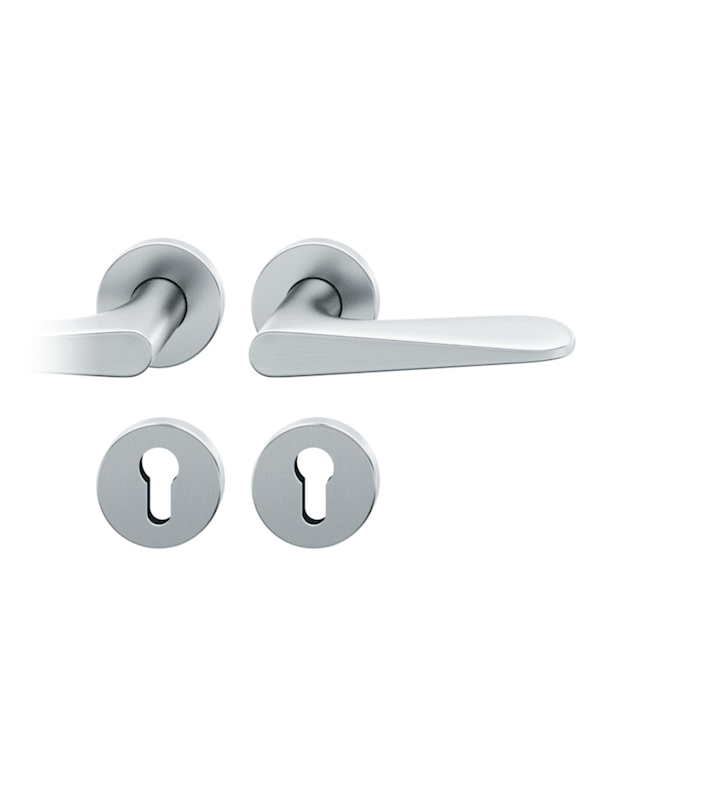 FSB Drückergarnitur 12 1144; Produkttyp: Drückergarnitur; Produkttyp (Hersteller): Drückergarnitur; Ausführung: Rosette; Befestigungsart Drückerrosette (außen): verdeckt verschraubt; Befestigungsart Drückerrosette (innen): verdeckt verschraubt; Befestigungsart Schlüsselrosette (außen): verdeckt verschraubt; Befestigungsart Schlüsselrosette (innen): verdeckt verschraubt; Befestigungstechnik: mit Stütznocken; Montageart: aufliegend; Form Drückerrosette: rund; Form Schlüsselrosette (außen): rund; Form Schlüsselrosette (innen): rund; Vierkant: 8 mm; Material: Edelstahl; Material Unterkonstruktion (Griffrosette): Kunststoff-Edelstahlverbundbau; Form Türgriff (innen): L-Form; Form Türgriff (außen): L-Form; Durchmesser Schlüsselrosette: 55 mm; Länge Türgriff (innen): 131 mm; Länge Türgriff (außen): 131 mm; Höhe Türgriff (innen): 64 mm; Höhe Türgriff (außen): 64 mm; Durchmesser Drückerrosette (außen): 55 mm; Durchmesser Drückerrosette (innen): 55 mm; Höhe Drückerrosette (außen): 7 mm; Höhe Drückerrosette (innen): 7 mm; Höhe Schlüsselrosette (außen): 7 mm; Höhe Schlüsselrosette (innen): 7 mm; Lagerung: Adapter-Standardlager,festdrehbar,mit Rückholfeder; Einsatzbereich: Objekttür; Türart: Vollblatt; Türwerkstoff: Stahl,Holz; Lochung: Profilzylinder gelocht; DIN-Richtung: DIN Links-Rechts; Farbe: grau; Farbton: edelstahl; Oberfläche: fein matt; Ausführung Vierkant: Stabilstift; Betätigungswinkel max.: 45 °; Design Türdrücker: Jasper Morrison; Türstärke min.: 39 mm; Türstärke max.: 58 mm; Norm: DIN EN 1906; EN 1906 - Gebrauchskategorie: Klasse 4; EN 1906 - Dauerhaftigkeit: Klasse 7; EN 1906 - Türmasse: -; EN 1906 - Feuerbeständigkeit: Klasse 0; EN 1906 - Sicherheit: Klasse 1; EN 1906 - Korrosionsbeständigkeit: Klasse 5; EN 1906 - Einbruchschutz: Klasse 0; EN 1906 - Ausführungsart: Typ A; Klassifizierungsschlüssel EN 1906: 47-0150A