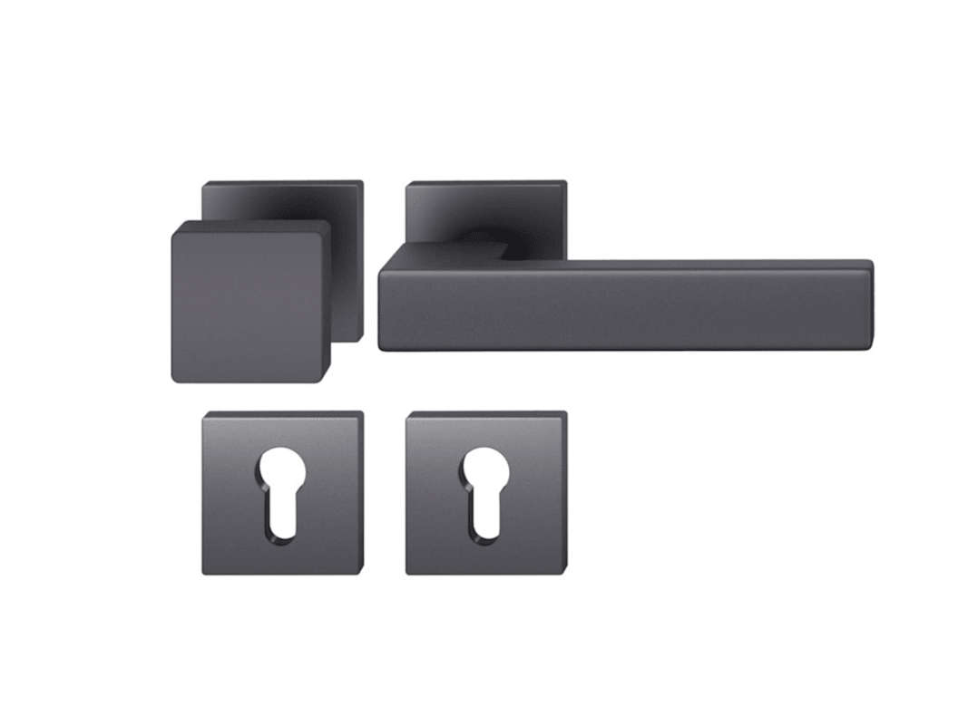 FSB Wechselgarnitur 12 1183; Produkttyp: Wechselgarnitur; Produkttyp (Hersteller): Wechselgarnitur; Ausführung: Rosette; Befestigungsart Drückerrosette (außen): verdeckt verschraubt; Befestigungsart Drückerrosette (innen): verdeckt verschraubt; Befestigungsart Schlüsselrosette (außen): verdeckt verschraubt; Befestigungsart Schlüsselrosette (innen): verdeckt verschraubt; Befestigungstechnik: mit Stütznocken; Montageart: aufliegend; Form Drückerrosette: eckig; Form Schlüsselrosette (außen): eckig; Form Schlüsselrosette (innen): eckig; Vierkant: 8 mm; Material: Aluminium; Material Unterkonstruktion (Griffrosette): Kunststoff-Edelstahlverbundbau; Form Türgriff (innen): Design; Form Türgriff (außen): Flachknopf; Ausführung Türgriff (außen): fest; Gewinde Knopf/Griffplatte: M12; Breite Türgriff (außen): 50 mm; Länge Türgriff (innen): 161 mm; Höhe Türgriff (innen): 49 mm; Höhe Türgriff (außen): 46 mm; Breite Drückerrosette (außen): 55 mm; Breite Drückerrosette (innen): 55 mm; Länge Drückerrosette (außen): 55 mm; Länge Drückerrosette (innen): 55 mm; Höhe Drückerrosette (außen): 7 mm; Höhe Drückerrosette (innen): 7 mm; Breite Schlüsselrosette (außen): 55 mm; Breite Schlüsselrosette (innen): 55 mm; Länge Schlüsselrosette (außen): 55 mm; Länge Schlüsselrosette (innen): 55 mm; Höhe Schlüsselrosette (außen): 7 mm; Höhe Schlüsselrosette (innen): 7 mm; Lagerung: Adapter-Standardlager,festdrehbar; Einsatzbereich: Objekttür,Haustür; Türart: Vollblatt; Türwerkstoff: Stahl,Holz; Lochung: Profilzylinder gelocht; DIN-Richtung: DIN Links-Rechts; Farbe: schwarz; Oberfläche: gestrahlt,eloxiert; Material Unterkonstruktion (Schlüsselrosette): Kunststoff-Edelstahlverbundbau; Ausführung Vierkant: Rollenwechselstift; Betätigungswinkel max.: 45 °; Design Türdrücker: Hadi Teherani; Türstärke min.: 39 mm; Türstärke max.: 58 mm; Norm: DIN EN 1906