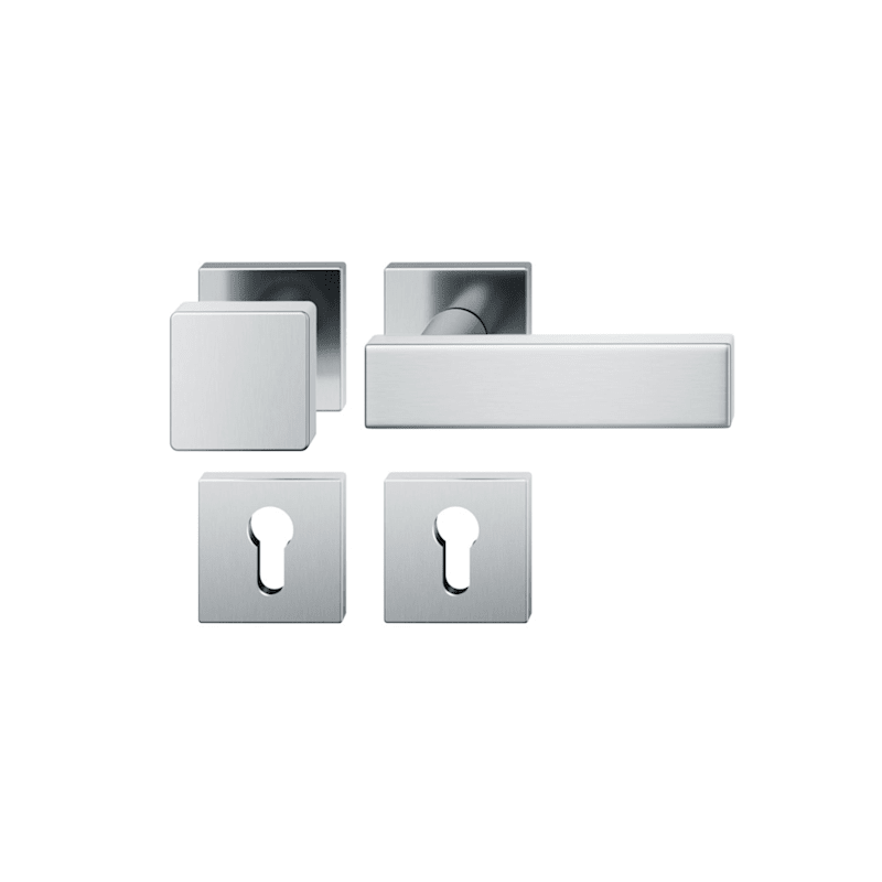 FSB Wechselgarnitur 12 1003; Produkttyp: Wechselgarnitur; Produkttyp (Hersteller): Wechselgarnitur; Ausführung: Rosette; Befestigungsart Drückerrosette (außen): verdeckt verschraubt; Befestigungsart Drückerrosette (innen): verdeckt verschraubt; Befestigungsart Schlüsselrosette (außen): verdeckt verschraubt; Befestigungsart Schlüsselrosette (innen): verdeckt verschraubt; Befestigungstechnik: mit Stütznocken; Montageart: aufliegend; Form Drückerrosette: eckig; Form Schlüsselrosette (außen): eckig; Form Schlüsselrosette (innen): eckig; Vierkant: 8 mm; Material: Edelstahl; Material Unterkonstruktion (Griffrosette): Kunststoff-Edelstahlverbundbau; Form Türgriff (innen): Design; Form Türgriff (außen): Flachknopf; Ausführung Türgriff (außen): fest; Gewinde Knopf/Griffplatte: M12; Breite Türgriff (außen): 50 mm; Länge Türgriff (innen): 130 mm; Höhe Türgriff (innen): 53 mm; Höhe Türgriff (außen): 46 mm; Breite Drückerrosette (außen): 55 mm; Breite Drückerrosette (innen): 55 mm; Länge Drückerrosette (außen): 55 mm; Länge Drückerrosette (innen): 55 mm; Höhe Drückerrosette (außen): 7 mm; Höhe Drückerrosette (innen): 7 mm; Breite Schlüsselrosette (außen): 55 mm; Breite Schlüsselrosette (innen): 55 mm; Länge Schlüsselrosette (außen): 55 mm; Länge Schlüsselrosette (innen): 55 mm; Höhe Schlüsselrosette (außen): 7 mm; Höhe Schlüsselrosette (innen): 7 mm; Lagerung: festdrehbar,Adapter-Standardlager; Einsatzbereich: Haustür,Objekttür; Türart: Vollblatt; Türwerkstoff: Stahl,Holz; Lochung: Profilzylinder gelocht; DIN-Richtung: DIN Links-Rechts; Farbe: grau; Farbton: edelstahl; Oberfläche: poliert; Material Unterkonstruktion (Schlüsselrosette): Kunststoff-Edelstahlverbundbau; Ausführung Vierkant: Rollenwechselstift; Betätigungswinkel max.: 45 °; Design Türdrücker: Johannes Potente; Türstärke min.: 39 mm; Türstärke max.: 58 mm; Norm: DIN EN 1906