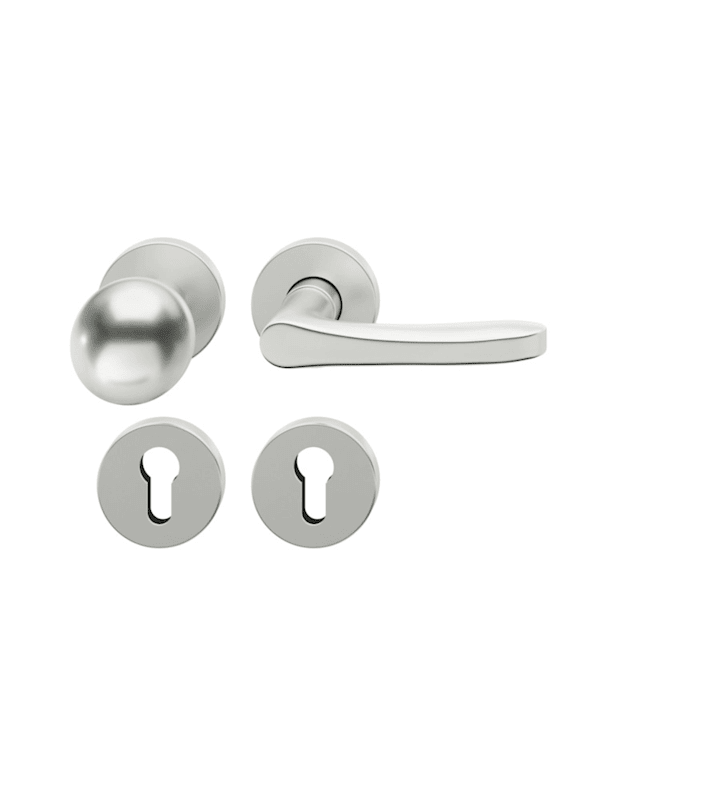 FSB Wechselgarnitur 12 1106; Produkttyp: Wechselgarnitur; Produkttyp (Hersteller): Wechselgarnitur; Ausführung: Rosette; Befestigungsart Drückerrosette (außen): verdeckt verschraubt; Befestigungsart Drückerrosette (innen): verdeckt verschraubt; Befestigungsart Schlüsselrosette (außen): verdeckt verschraubt; Befestigungsart Schlüsselrosette (innen): verdeckt verschraubt; Befestigungstechnik: mit Stütznocken; Montageart: aufliegend; Form Drückerrosette: rund; Form Schlüsselrosette (außen): rund; Form Schlüsselrosette (innen): rund; Vierkant: 8 mm; Material: Aluminium; Material Unterkonstruktion (Griffrosette): Kunststoff-Edelstahlverbundbau; Form Türgriff (innen): gebogen; Form Türgriff (außen): Kugelknopf; Ausführung Türgriff (außen): fest; Gewinde Knopf/Griffplatte: M12; Durchmesser Türgriff (außen): 50 mm; Durchmesser Schlüsselrosette: 55 mm; Länge Türgriff (innen): 119 mm; Höhe Türgriff (innen): 61 mm; Höhe Türgriff (außen): 70 mm; Durchmesser Drückerrosette (außen): 55 mm; Durchmesser Drückerrosette (innen): 55 mm; Höhe Drückerrosette (außen): 7 mm; Höhe Drückerrosette (innen): 7 mm; Höhe Schlüsselrosette (außen): 7 mm; Höhe Schlüsselrosette (innen): 7 mm; Lagerung: Adapter-Standardlager,festdrehbar; Einsatzbereich: Haustür,Objekttür; Türart: Vollblatt; Türwerkstoff: Holz,Stahl; Lochung: Profilzylinder gelocht; DIN-Richtung: DIN Links-Rechts; Farbe: weiß; Farbton: verkehrsweiß; Farbe (RAL): ähnlich RAL 9016; Oberfläche: farbig kunststoffbeschichtet; Material Unterkonstruktion (Schlüsselrosette): Kunststoff-Edelstahlverbundbau; Ausführung Vierkant: Rollenwechselstift; Betätigungswinkel max.: 45 °; Design Türdrücker: Christoph Mäckler; Türstärke min.: 39 mm; Türstärke max.: 58 mm; Norm: DIN EN 1906