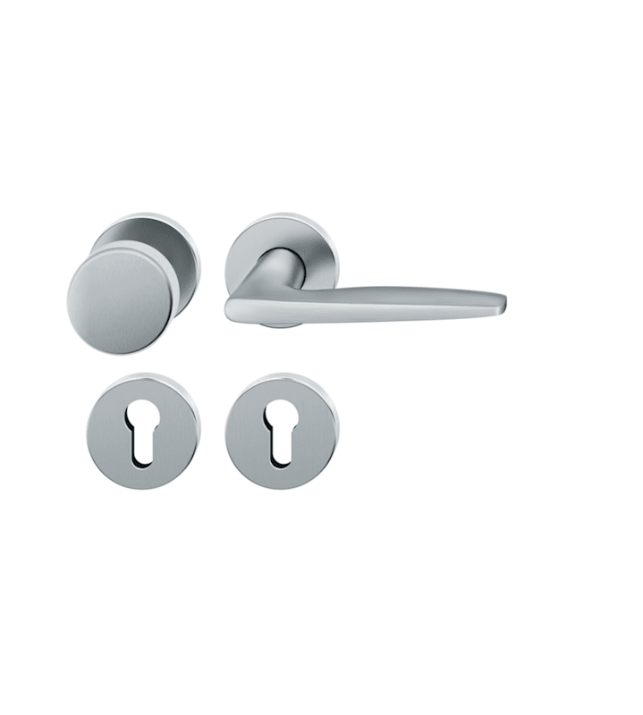 FSB Wechselgarnitur 12 1058; Produkttyp: Wechselgarnitur; Produkttyp (Hersteller): Wechselgarnitur; Ausführung: Rosette; Befestigungsart Drückerrosette (außen): verdeckt verschraubt; Befestigungsart Drückerrosette (innen): verdeckt verschraubt; Befestigungsart Schlüsselrosette (außen): verdeckt verschraubt; Befestigungsart Schlüsselrosette (innen): verdeckt verschraubt; Befestigungstechnik: mit Stütznocken; Montageart: aufliegend; Form Drückerrosette: rund; Form Schlüsselrosette (außen): rund; Form Schlüsselrosette (innen): rund; Vierkant: 8 mm; Material: Edelstahl; Material Unterkonstruktion (Griffrosette): Kunststoff-Edelstahlverbundbau; Form Türgriff (innen): L-Form; Form Türgriff (außen): Flachknopf; Ausführung Türgriff (außen): fest; Gewinde Knopf/Griffplatte: M12; Durchmesser Türgriff (außen): 55 mm; Durchmesser Schlüsselrosette: 55 mm; Länge Türgriff (innen): 129 mm; Höhe Türgriff (innen): 58 mm; Höhe Türgriff (außen): 45 mm; Durchmesser Drückerrosette (außen): 55 mm; Durchmesser Drückerrosette (innen): 55 mm; Höhe Drückerrosette (außen): 7 mm; Höhe Drückerrosette (innen): 7 mm; Höhe Schlüsselrosette (außen): 7 mm; Höhe Schlüsselrosette (innen): 7 mm; Lagerung: festdrehbar,Adapter-Standardlager; Einsatzbereich: Objekttür,Haustür; Türart: Vollblatt; Türwerkstoff: Stahl,Holz; Lochung: Profilzylinder gelocht; DIN-Richtung: DIN Links-Rechts; Farbe: grau; Farbton: edelstahl; Oberfläche: fein matt; Material Unterkonstruktion (Schlüsselrosette): Kunststoff-Edelstahlverbundbau; Ausführung Vierkant: Rollenwechselstift; Betätigungswinkel max.: 45 °; Design Türdrücker: Johannes Potente; Türstärke min.: 39 mm; Türstärke max.: 58 mm; Norm: DIN EN 1906