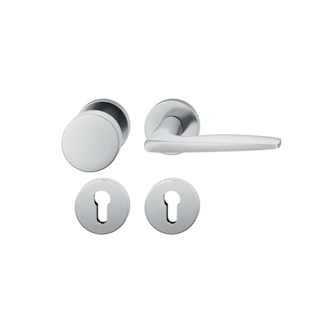 FSB Wechselgarnitur 12 1058; Produkttyp: Wechselgarnitur; Produkttyp (Hersteller): Wechselgarnitur; Ausführung: Rosette; Befestigungsart Drückerrosette (außen): verdeckt verschraubt; Befestigungsart Drückerrosette (innen): verdeckt verschraubt; Befestigungsart Schlüsselrosette (außen): verdeckt verschraubt; Befestigungsart Schlüsselrosette (innen): verdeckt verschraubt; Befestigungstechnik: mit Stütznocken; Montageart: aufliegend; Form Drückerrosette: rund; Form Schlüsselrosette (außen): rund; Form Schlüsselrosette (innen): rund; Vierkant: 8 mm; Material: Edelstahl; Material Unterkonstruktion (Griffrosette): Kunststoff-Edelstahlverbundbau; Form Türgriff (innen): L-Form; Form Türgriff (außen): Flachknopf; Ausführung Türgriff (außen): fest; Gewinde Knopf/Griffplatte: M12; Durchmesser Türgriff (außen): 55 mm; Durchmesser Schlüsselrosette: 55 mm; Länge Türgriff (innen): 129 mm; Höhe Türgriff (innen): 58 mm; Höhe Türgriff (außen): 45 mm; Durchmesser Drückerrosette (außen): 55 mm; Durchmesser Drückerrosette (innen): 55 mm; Höhe Drückerrosette (außen): 7 mm; Höhe Drückerrosette (innen): 7 mm; Höhe Schlüsselrosette (außen): 7 mm; Höhe Schlüsselrosette (innen): 7 mm; Lagerung: festdrehbar,Adapter-Standardlager; Einsatzbereich: Objekttür,Haustür; Türart: Vollblatt; Türwerkstoff: Stahl,Holz; Lochung: Profilzylinder gelocht; DIN-Richtung: DIN Links-Rechts; Farbe: grau; Farbton: edelstahl; Oberfläche: poliert; Material Unterkonstruktion (Schlüsselrosette): Kunststoff-Edelstahlverbundbau; Ausführung Vierkant: Rollenwechselstift; Betätigungswinkel max.: 45 °; Design Türdrücker: Johannes Potente; Türstärke min.: 39 mm; Türstärke max.: 58 mm; Norm: DIN EN 1906