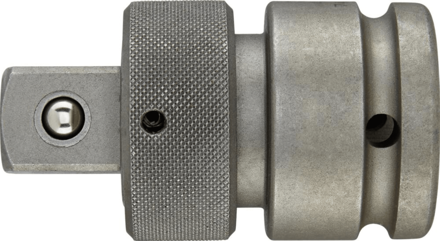 Kraft-Schnellwechselfutter 3/4"• Gehärtet und sandgestrahlt • Aus vergütetem Spezial-Werkzeugstahl • DIN 3120 • Mit federnder Kugel zum Festhalten der Kraft-Steckschlüssel-Einsätze