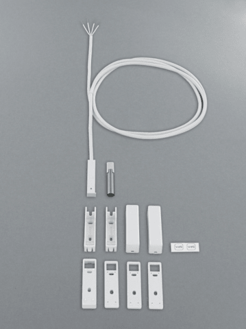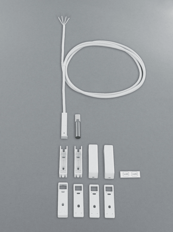 Aufbaumagnetkontakt LSA-Schneidklemmtechnik geeignet. Für Differentialmeldegruppen, sabotagegeschützt, für parallele Aufbaumontage.