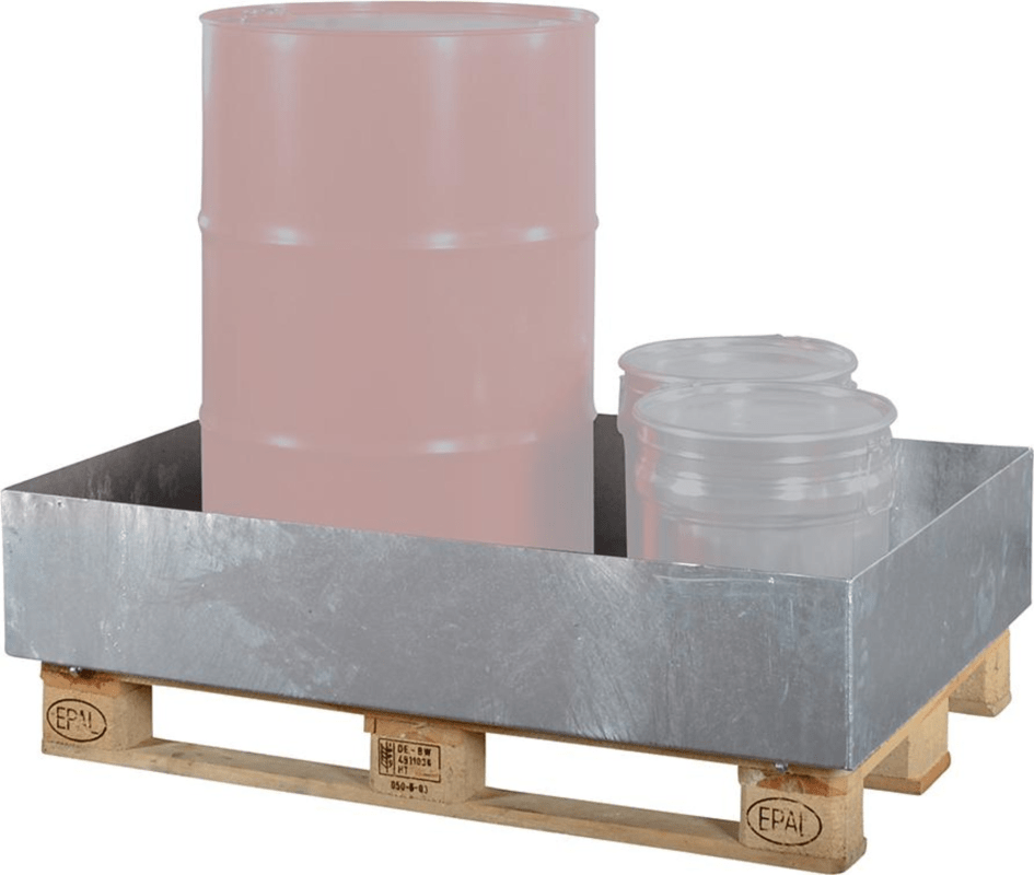 Hinweis: Vielseitig Auffangwannen, zur Aufstellung auf Euro- oder Chemiepaletten und in Kombination mit einem Fassbock auch zur liegenden Fasslagerung geeignet.