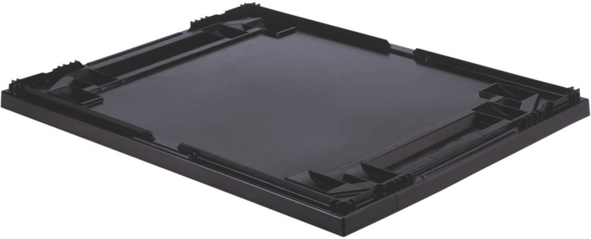 Auflagedeckel TK/DA • Material: Polypropylen • Universell einsetzbar als Staubdeckel • Stapelfähigkeit bleibt erhalten • Farbe: schwarz