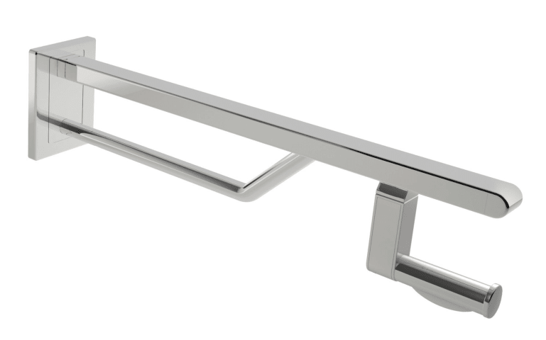 HEWI Aufrüstsatz WC-Papierhalterdient zur Nachrüstung an Stützklappgriffen 950.50.6... und Wandstützgriffen 950.50.7..., integrierte Rollenbremse, 35 mm breit, 123 mm hoch, 151 mm tief. Aus hochwertig