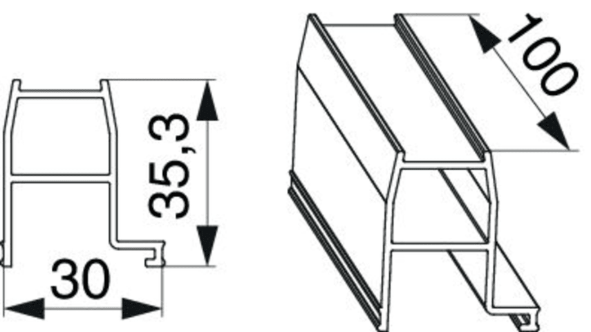 Aufsatzschiene HS-ST in Alu für fixen Flügel Salamander eD 82 Nut 22x31 L=100 silber