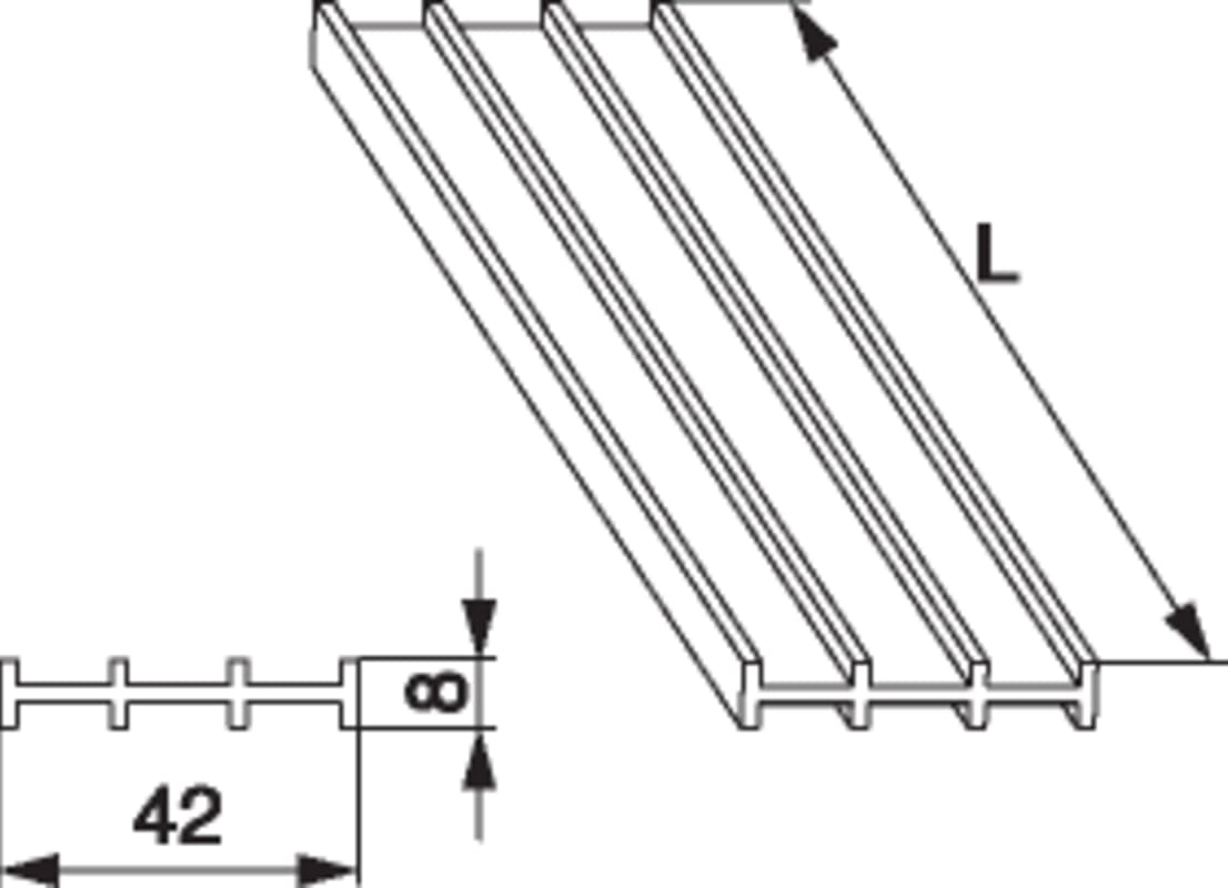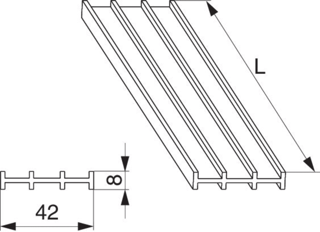 Aufsatzschiene mit Dichtband HS in PVC für fixen Flügel Nut 42x4 H=8 L=2.500 schwarz