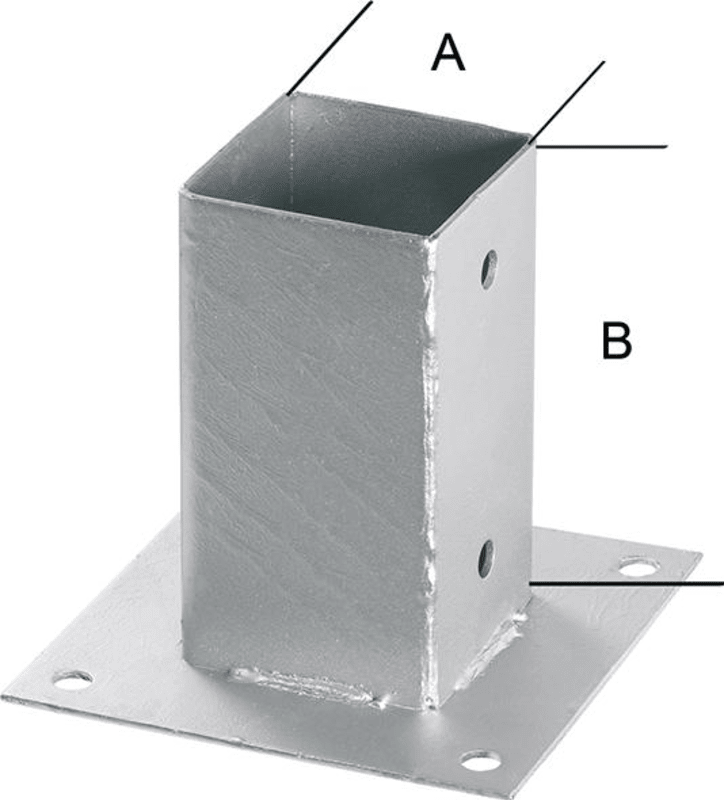 Aufschraubhülse für 4-kant-Holz, feuerverzinkt• Je Seite mit 2 Löchern, Loch-Ø 10,5 mm
