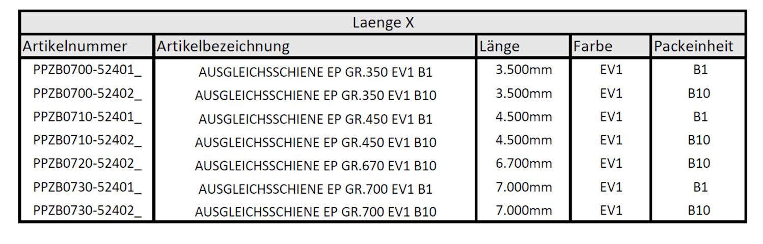 Ausgleichsschiene EP GR.700 EV1 B1 PPZB0240-524010