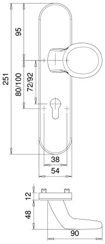 Dieckmann EST-Außenschild mit Rosettenverschraubung, Serie Metis, ovales Langschild 12mm, 92 PZ,, mit Griff K2, 8723H/K2 F00