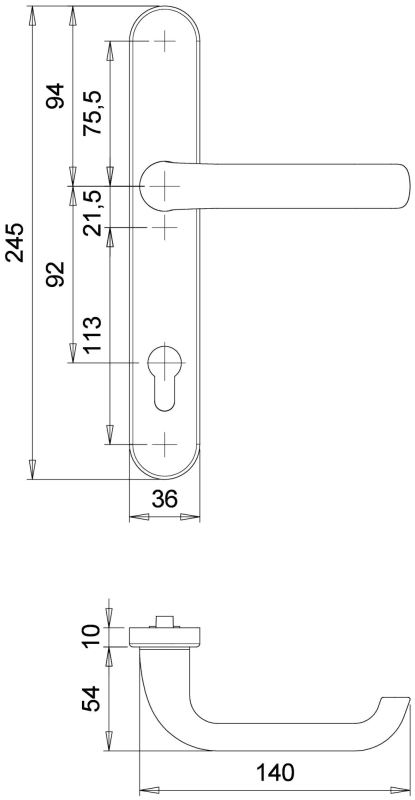 BKS Einsteckschloss B 1300,PZ92/8,D35,F16x255ktg,NiSi