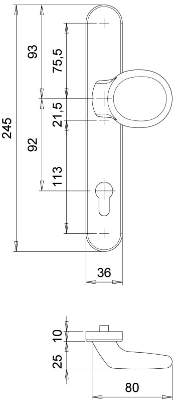 Dieckmann Alu-Rahmen-1/2-Garnitur außen mit Griff K2R, Serie Kronos, 92 PZ, K2R/135 F12