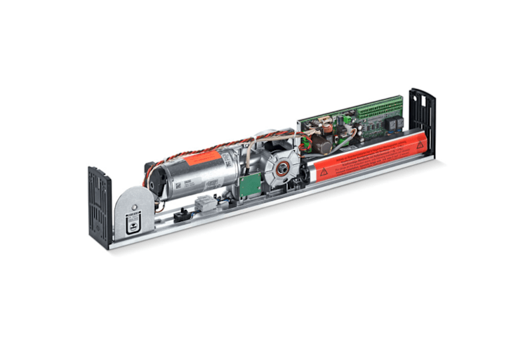 Elektromechanischer Drehtürantrieb für 2-flügelige Anschlagtüren und Brandschutztüren.