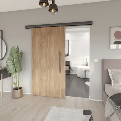 Automatic Schiebetürbeschlag 9182 LIVORNO PREMIUM, m. elektrischem Antrieb, f. 1 flg. Holztür 40-45mm, bis 80 kg, Schienenlänge 2000 mm, 2.4 GHz Funk, - DE/AT Montageanleitung/Handbuch -, Oberfl. 74 (