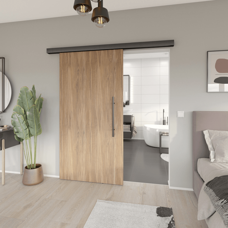 Automatic Schiebetürbeschlag 9182 LIVORNO PREMIUM, m. elektrischem Antrieb, f. 1 flg. Holztür 40-45mm, bis 80 kg, Schienenlänge 2400 mm, 2.4 GHz Funk, - DE/AT Montageanleitung/Handbuch -, Oberfl. 74 (