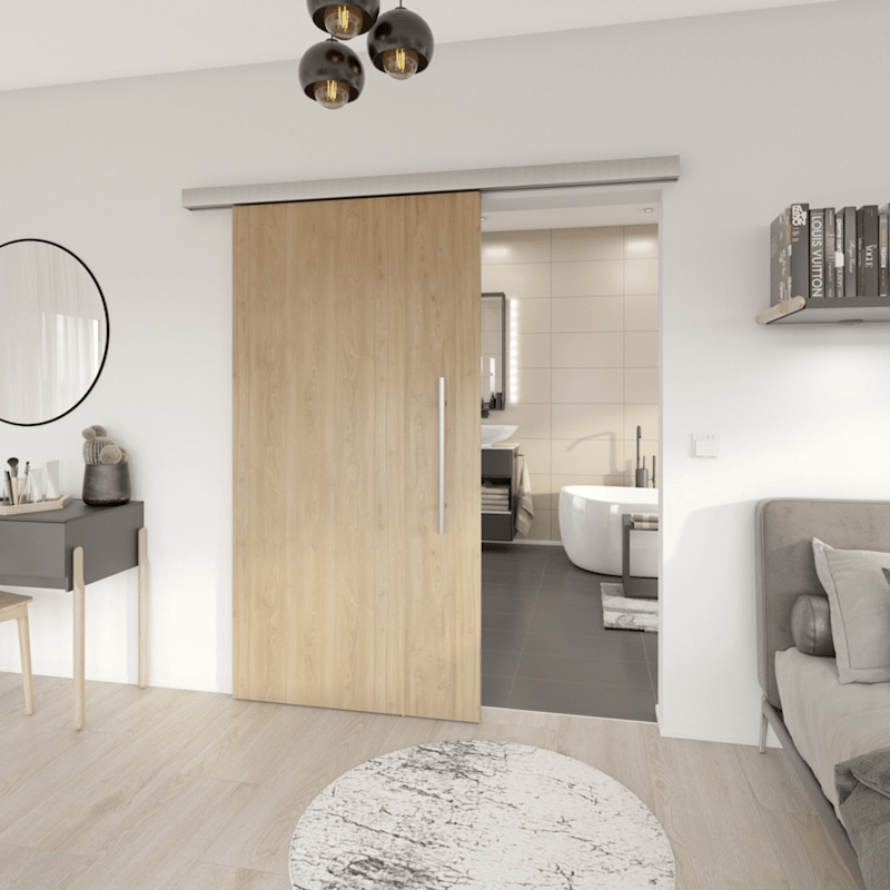 Automatic Schiebetürbeschlag 9182 LIVORNO PREMIUM m. elektrischem Antrieb, f. 1 flg. Holztür 40-45mm bis 80 kg, Schienenlänge 4001-6000mm, 2.4 GHz Funk - DE/AT Montageanleitung/Handbuch - Oberfl. F9 (