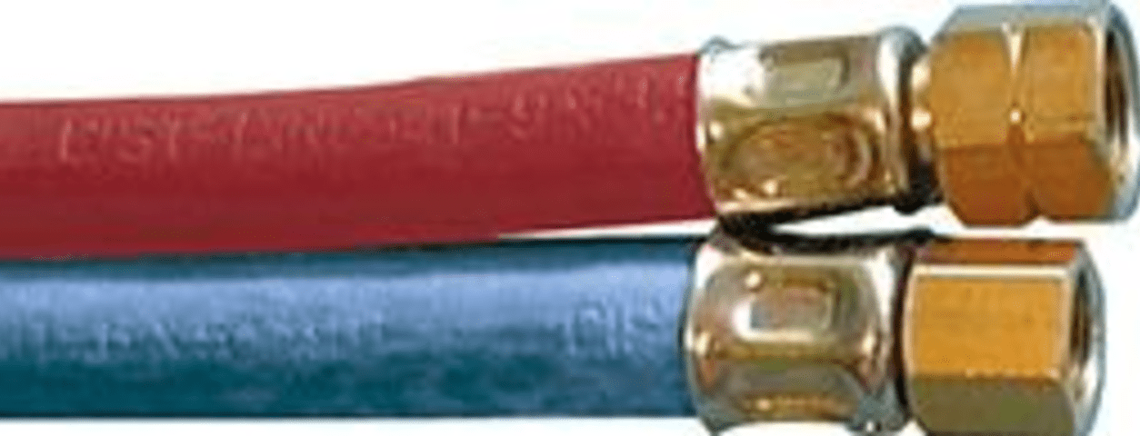 • Acetylen- (9,0 x 3,5 mm) und Sauerstoffschlauch (6,0 x 5,0 mm), beidseitig mit Tülle und Überwurfmutter G 1/4" R bzw. G 3/8" L