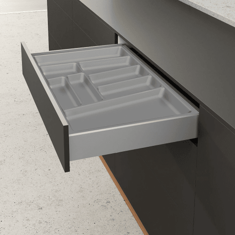 • Kunststoffbesteckeinsatz• Einsetzbar mit Schubkastensystem AvanTech YOU ab Zargenhöhe 101 mm• Für Standardkorpusbreiten• Optimiert für Korpusseitendicke 16 mm• Zuschnitt des Besteckeinsatzes er