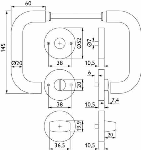 Hermat Drückergarnitur 1801/2036.K,Ros.,rd.,WC/S,8(8),class.black,TS 38-42