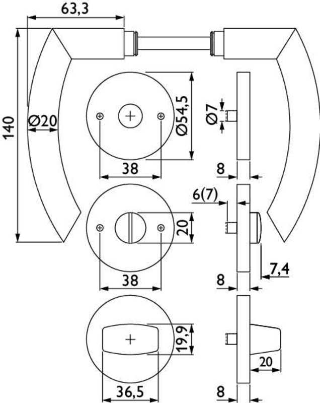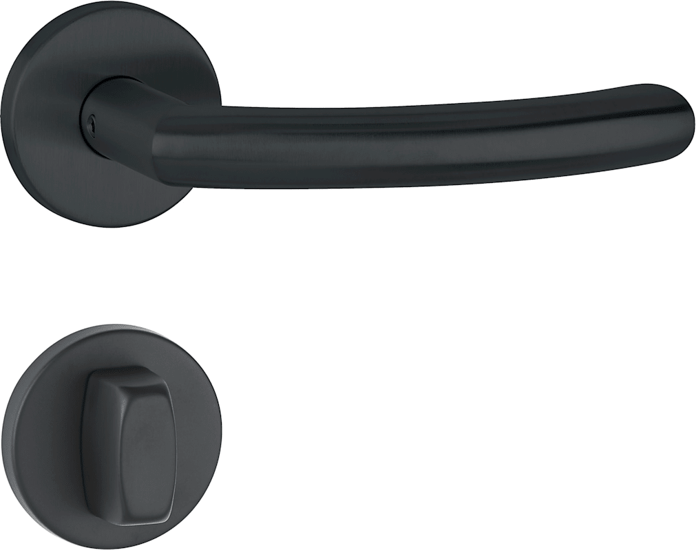 Bad-Drückergarnitur 1804 BASIC 04 - Klasse 3 | mit Rosetten 2273 K | Ausf.: BAD mit Riegel 3212/3216 - 6 mm Vierkant | mit Hülse 7/8, Rückholfeder, Türstärke 38 - 42 mm | Oberfl. 74 (Classic Black, äh