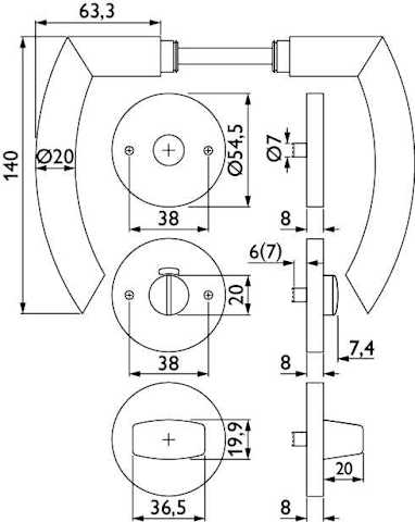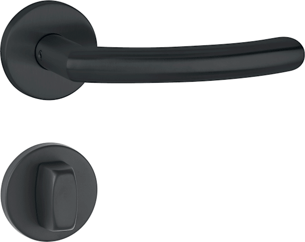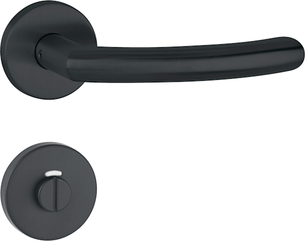 Bad-Drückergarnitur 1804 BASIC 04 - Klasse 3 | mit Rosetten 2273 K / Sichtscheibe rot/weiß | Ausf.: BAD mit Riegel 3212/3216 - 6 mm Vierkant | mit Hülse 7/8, Rückholfeder, Türstärke 38 - 42 mm | Oberf