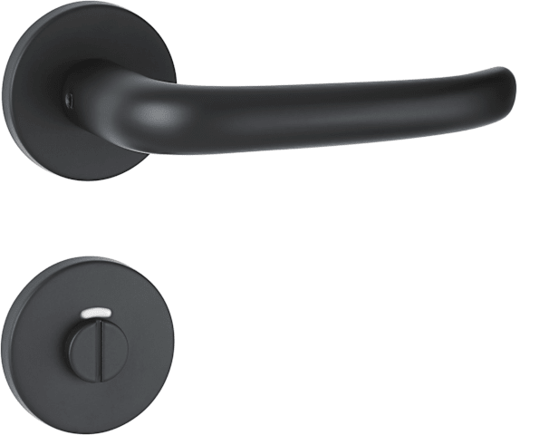 Bad-Drückergarnitur 1806 BASIC 06 - Klasse 3 | mit Rosetten 2273 K / Sichtscheibe rot/weiß | Ausf.: BAD mit Riegel 3212/3216 - 6 mm Vierkant | mit Hülse 7/8, Rückholfeder, Türstärke 38 - 42 mm | Oberf