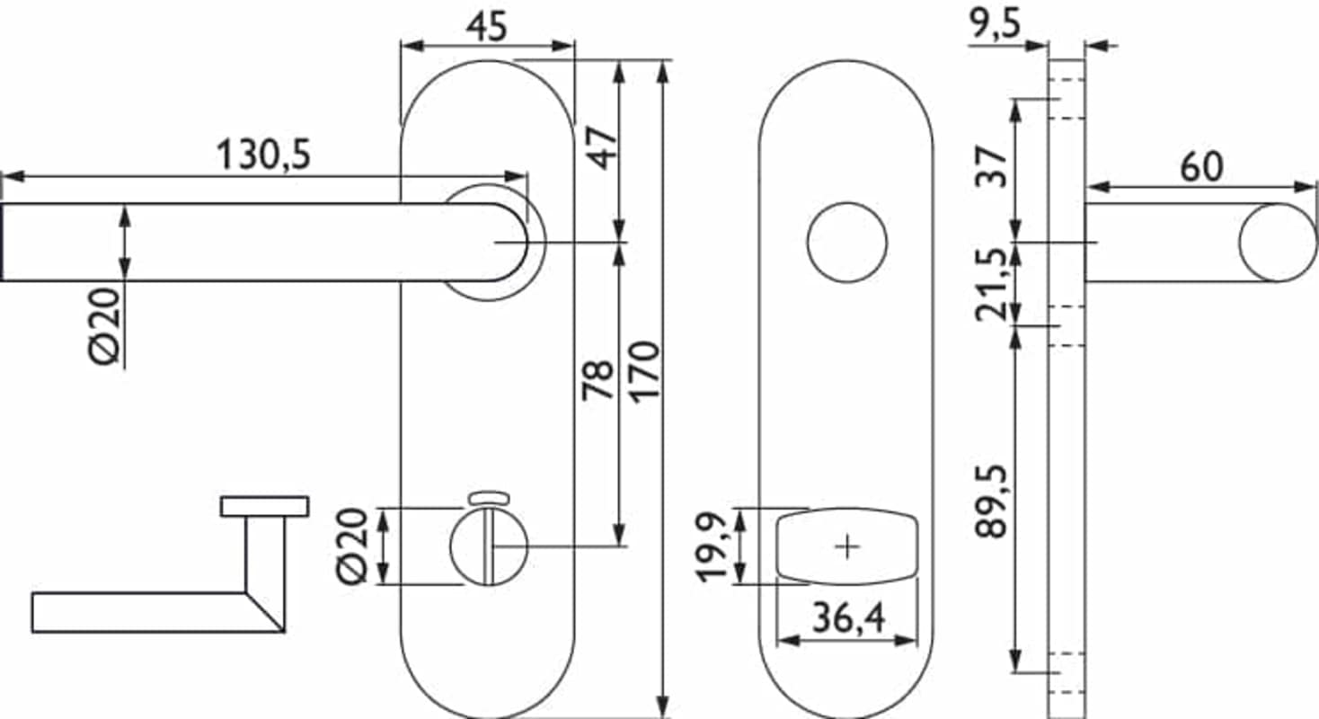 • Durchmesser Türgriff (innen): 20 mm