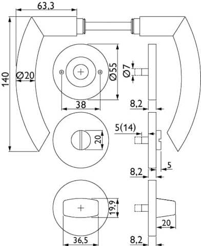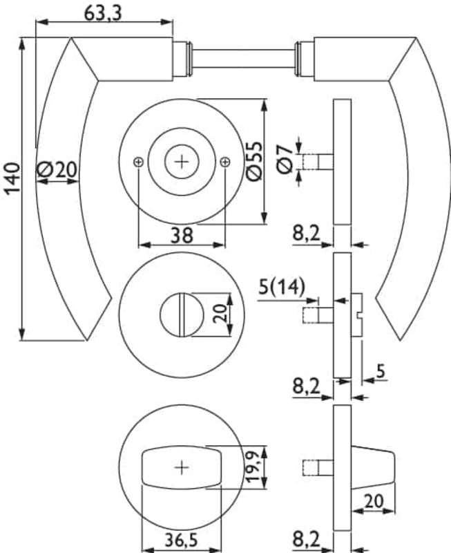 • Höhe Schlüsselrosette (außen): 8,2 mm