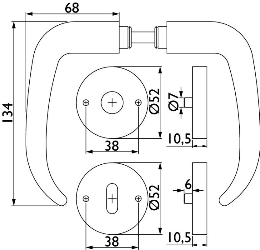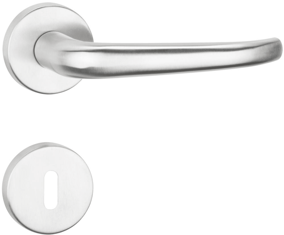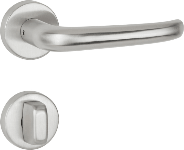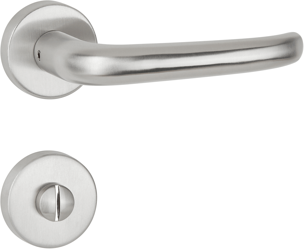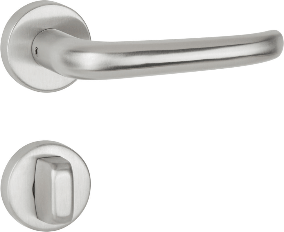 Bad-Drückergarnitur 1806 BASIC 06, mit Rosetten 2036 K, Ausf.: BAD mit Riegel 3212/3216 - 6 mm Vierkant, mit Hülse 7/8 mm, Türstärke 38 - 42 mm, Oberfl. 60 (Edelstahl matt)
