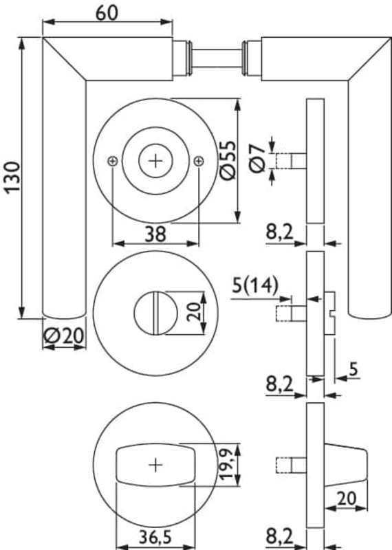 Höhe Schlüsselrosette (außen): 8,2 mm