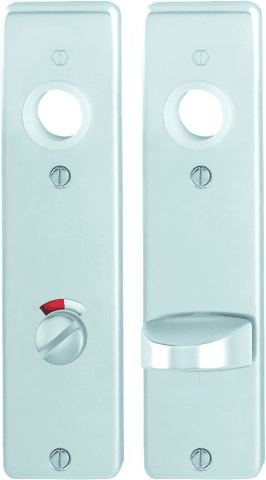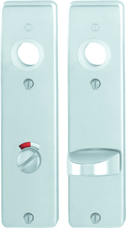 HOPPE-Aluminium-Kurzschild-Paar für Innentüren: • Lagerung: für Türgriffe lose, wartungsfreie Gleitlager • Befestigung: sichtbar, Kunststoff-Anschlagplatten und Mehrzweckschrauben