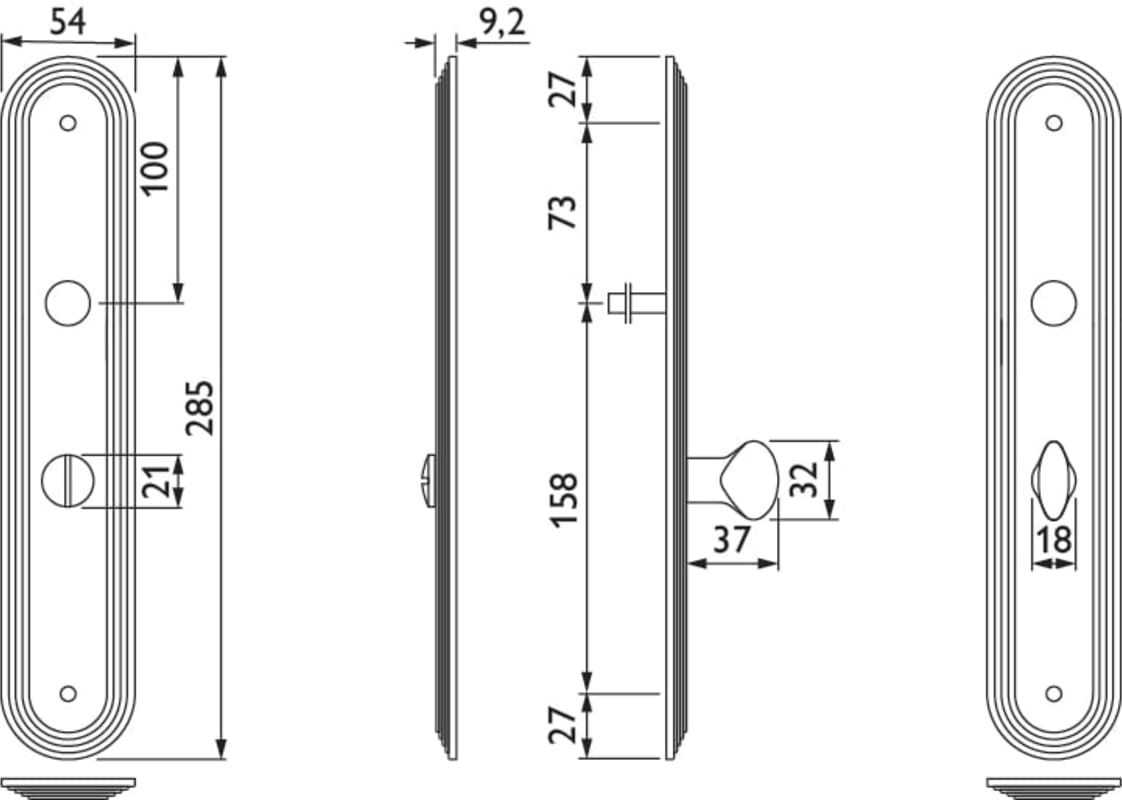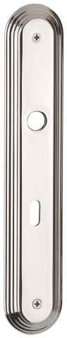 Bad-Langschild 2088, Drücker- und Badstanzung 16 mm Ø, Ausf.: BAD 78 mm, mit Riegel 3215 / 3213, Oberfl. 21 (Glanznickel)