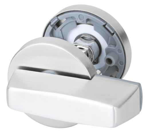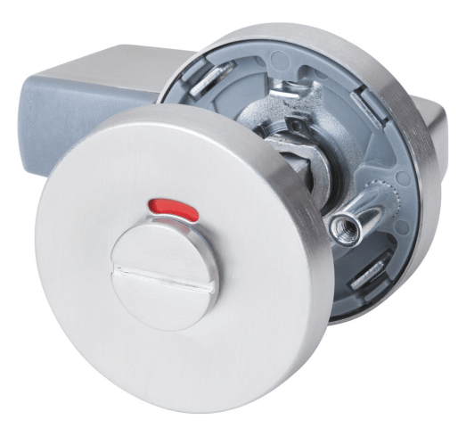 Bad-Rosette 2073 M R/W, mit Riegel 3221/3226 / 6 mm Vierkant, rot/weiß Scheibe / mit langem Riegelknopf, inkl. Schrauben M4 x 50 mm, Hülse 7/8 mm, Oberfl. 60 (Edelstahl matt)
