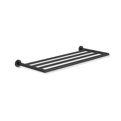 HEWI BadetuchablageMessing, matt schwarz beschichtet, Breite 644 mm, Tiefe 260 mm, Durchmesser 18 mm.