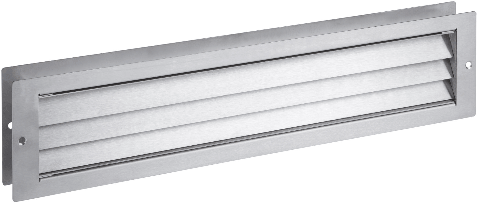Badezellenlüftung 5020 / 465 x 106 mm, Ausschnitt 432 x 79 mm/Lüftungsquerschnitt 160 cm², mit Hülsenschrauben M4 x 30/55 m, zur paarweisen Verschraubung von Tst. 35 - 60 mm, Oberfl. F1 (Silberfarben eloxiert)