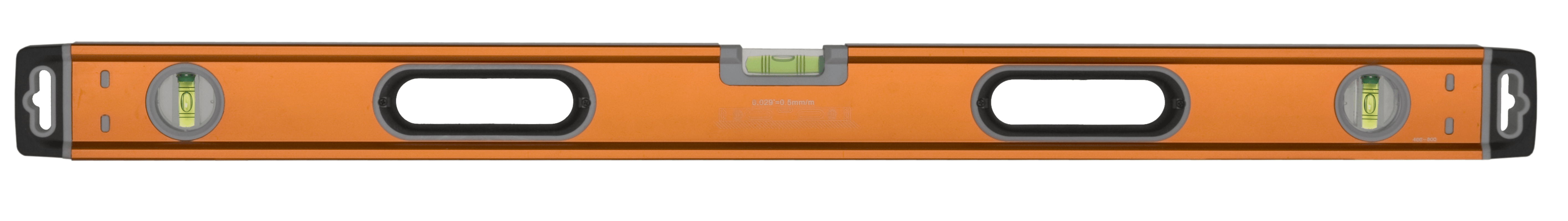 • Wasserwaage aus eloxiertem Aluminium • Mit stoßdämpfenden Gummi-Endkappen • Dauerhaft, hohe Genauigkeit von ± 0,5 mm/m • Bearbeitete Oberfläche mit V-förmiger Einkerbung an der Unterseite • Breit geformtes Profil • Große Libellen ermöglichen komfortables Ablesen auch bei schlechter Beleuchtung • Große Grifflöcher ermöglichen einfaches Anlegen • Messskala mit Lasermarkierung