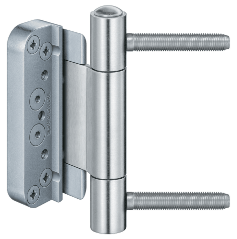 Mit 2D Verstellung für Holzhaustüren. Produkteigenschaften: • verdeckt liegendes Aufnahmeelement im Flügel • wartungsfreie Gleitlagertechnik • 2D verstellbar (Seite +/- 3,0 mm, Andruck +/- 3,0 mm)