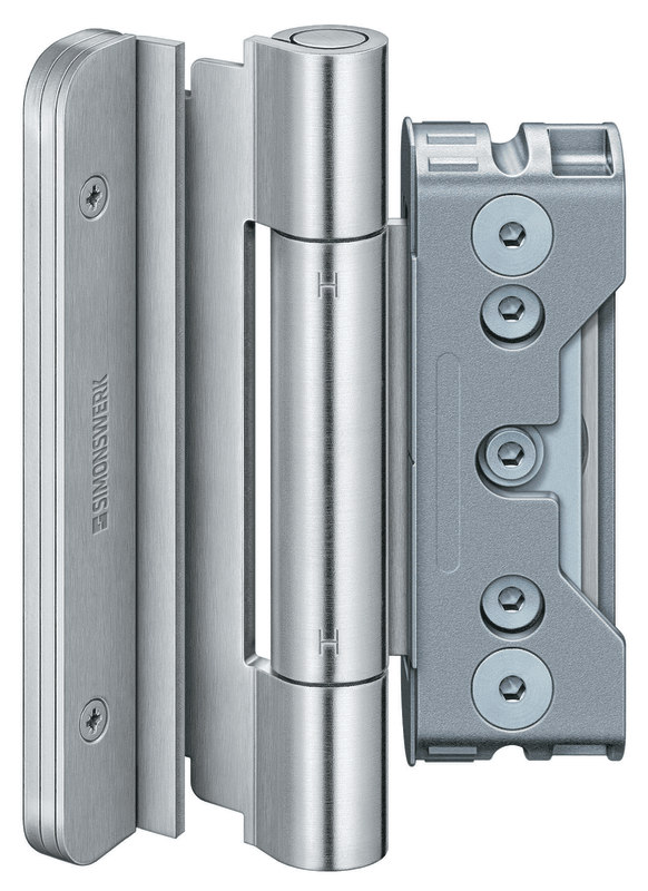 Holzhaustürband BAKA Protect 4030 3D FD mit verdeckt liegendem Aufnahmeelement im Flügel und Rahmen für Türen mit Flügeldichtung. CE-zertifiziert, Komfort-Exzenter-VerstellungDIN rechts und links ver