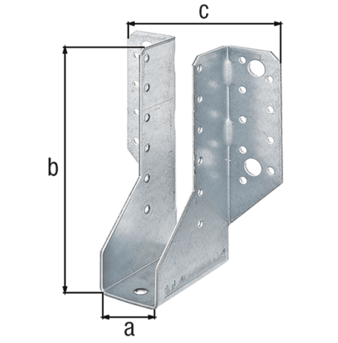 GAH Alberts; Typbezeichnung: Balkenschuhe; Werkstoff: Edelstahl; Befestigung: Kammnägel; Anwendungsbereich: Holz / Holz Anschlüsse; Anwendbare Materialien Auflager: Holzwerkstoffe; Material aufzulager