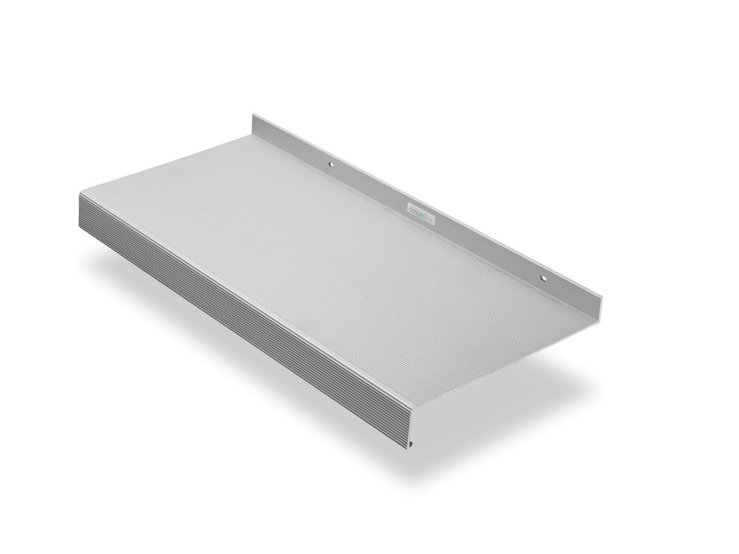 Eine rutschhemmende Austrittfensterbank in der Oberfläche E6/EV1. Sämtliche Standard-Zubehörteile sind für diese Fensterbank einsetzbar.