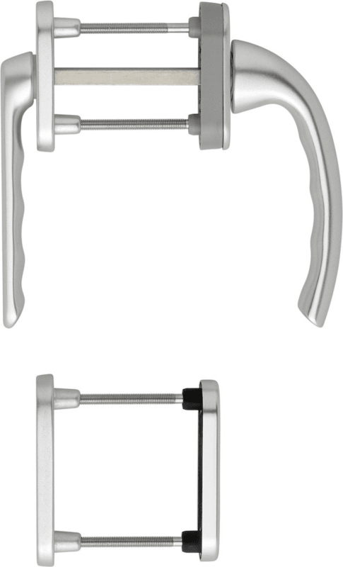 Fenstertür- Griffgarnitur, Profilzylinder gelocht, Tokyo 099KH/66N, Türstärke min. 63, Türstärke max. 68, Nockendurchmesser 12, Aluminium naturfarbig