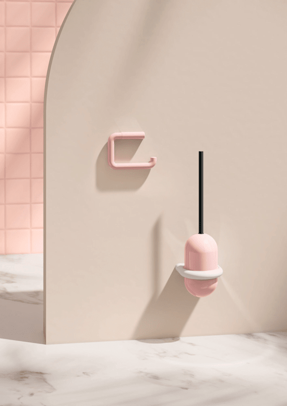 Produktset WC-Bürstengarnitur und WC-Papierhalter Barbie™ x HEWI bestehend aus: