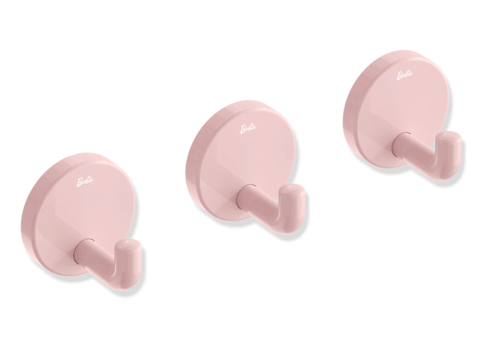 Die drei stilvollen Haken aus der Barbie™ x HEWI Kollektion in Rosa eignen sich ideal für die Aufbewahrung von Handtüchern im Badezimmer oder als Kleiderhaken für Jacken. Das Dreamteam bietet praktisc