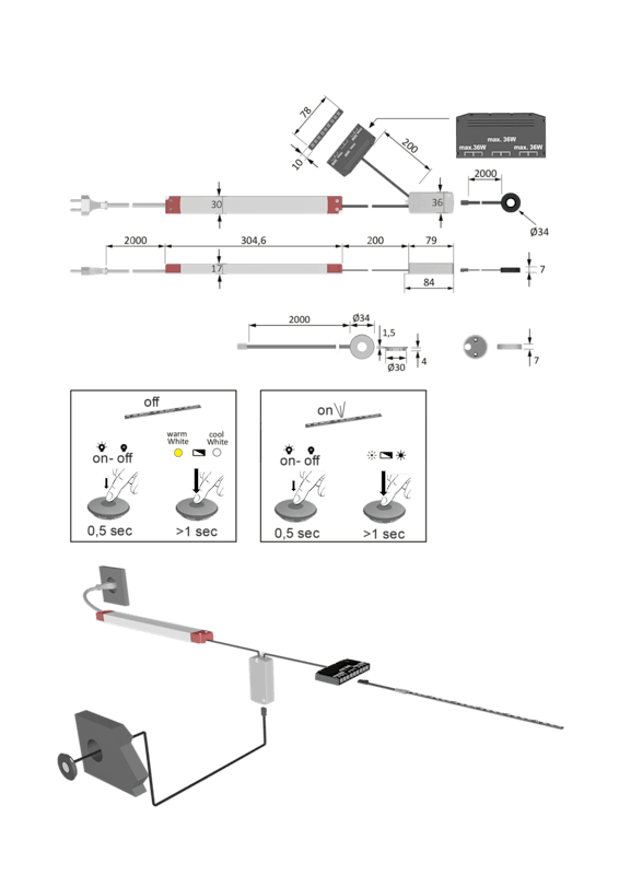 Wechsel der Lichtfarbe KaltWeiß bis ExtraWarmWeiß möglich
